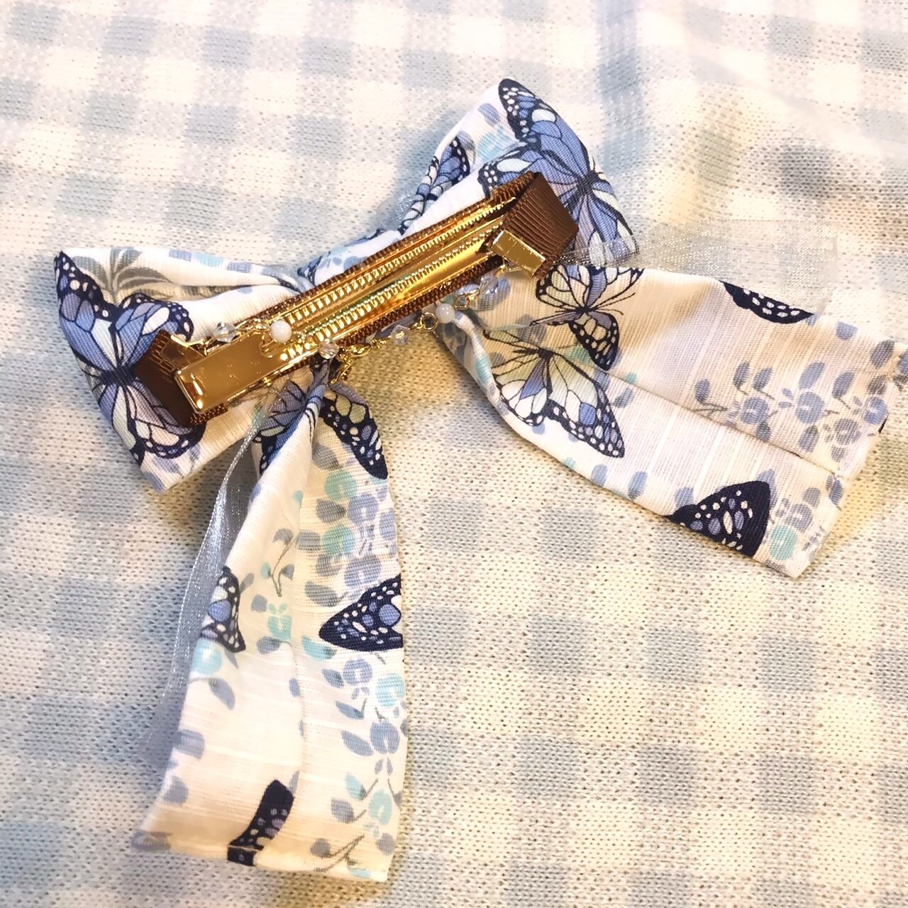 こちらは白に青系蝶々柄×オーガンジーのシルバーグレー色です。