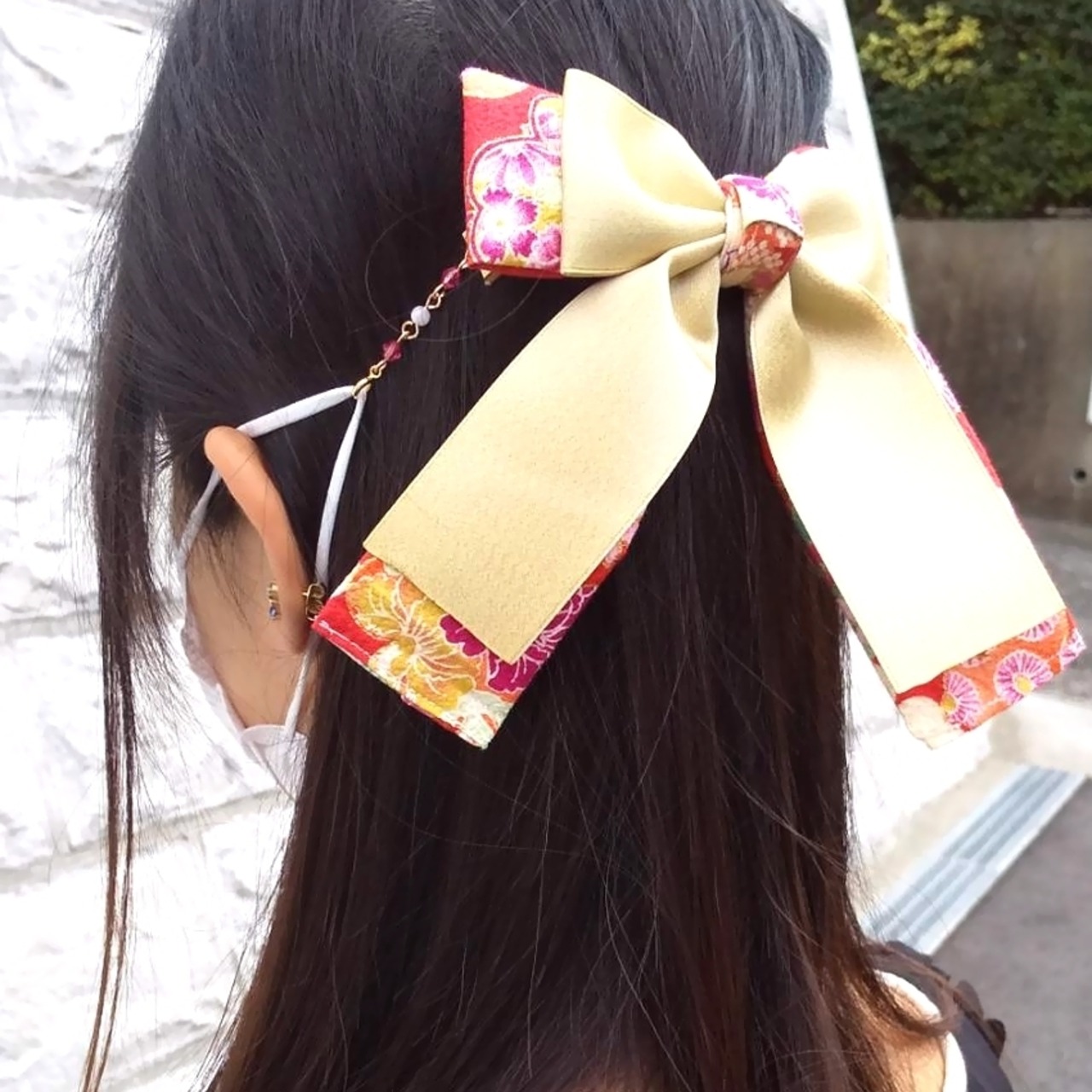 ヘアクリップをつける位置(高さ)を調整することで、マスクゴムが耳に当たらない・痛くならない位置が見つかります。髪が短い方はヘアゴムでいったん結んでいただくと安定します。