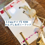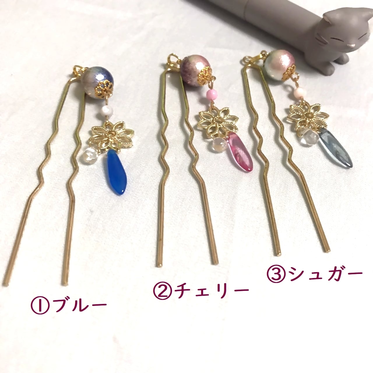 かんざしの軸(スティック)を、木製やポニーフック、二又かんざし等に変更可能です。
