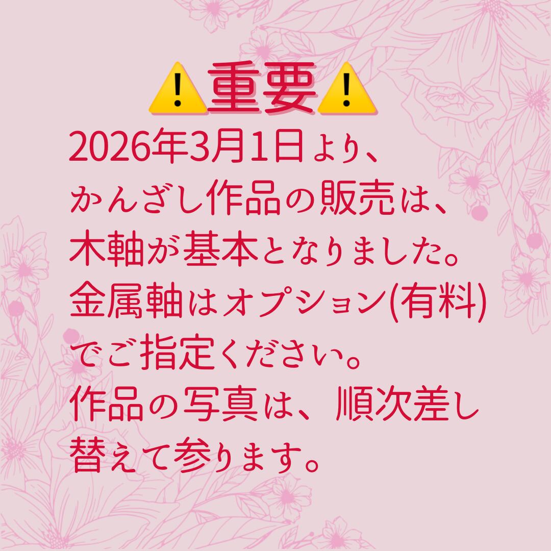 2026年3月1日より、かんざし作品の販売は、木軸が基本となりました。金属軸はオプション(有料)でご指定ください。