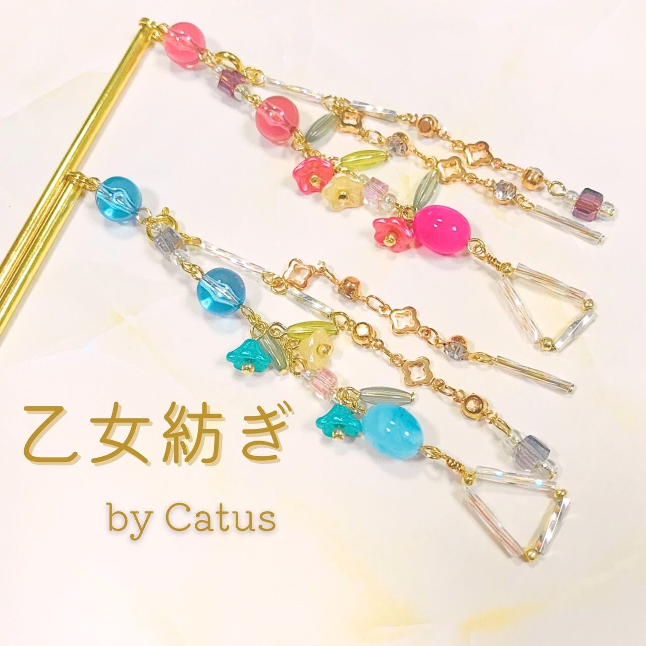 かんざしの軸(スティック)を、木製やポニーフック、二又かんざし等に変更可能です。