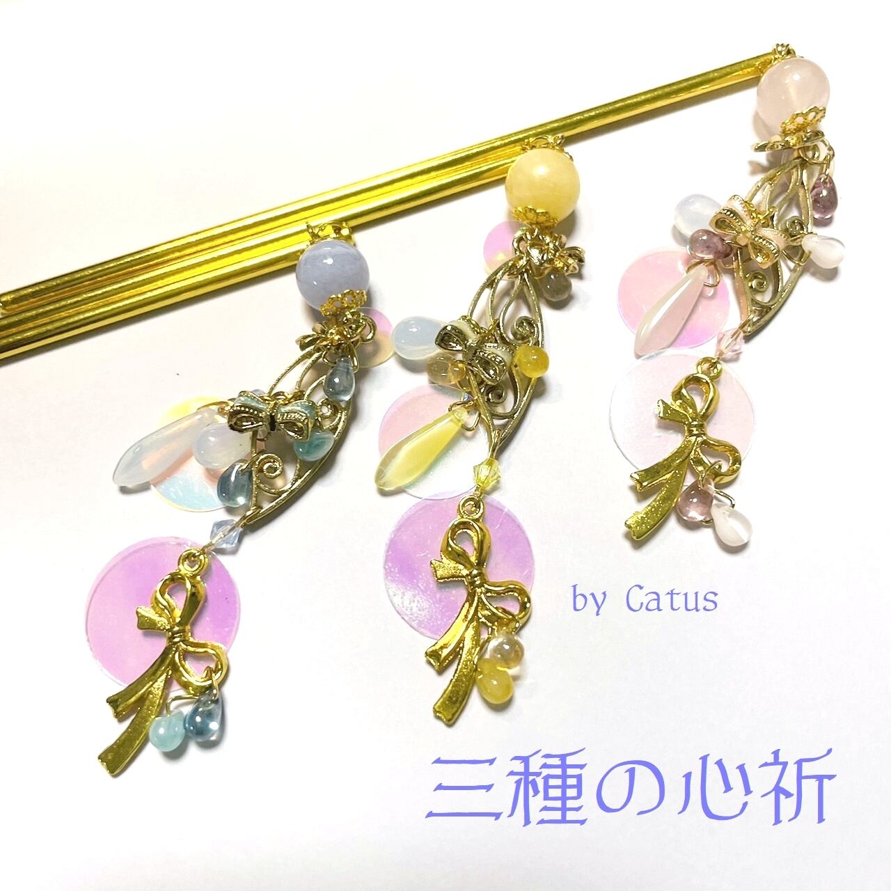かんざしの軸(スティック)を、木製やポニーフック、二又かんざし等に変更可能です。