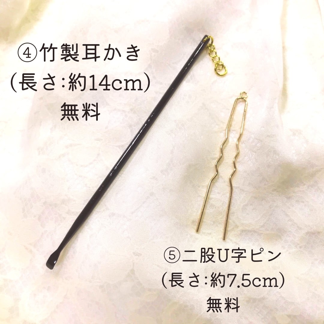 かんざしの軸(スティック)を、木製やポニーフック、二又かんざし等に変更可能です。