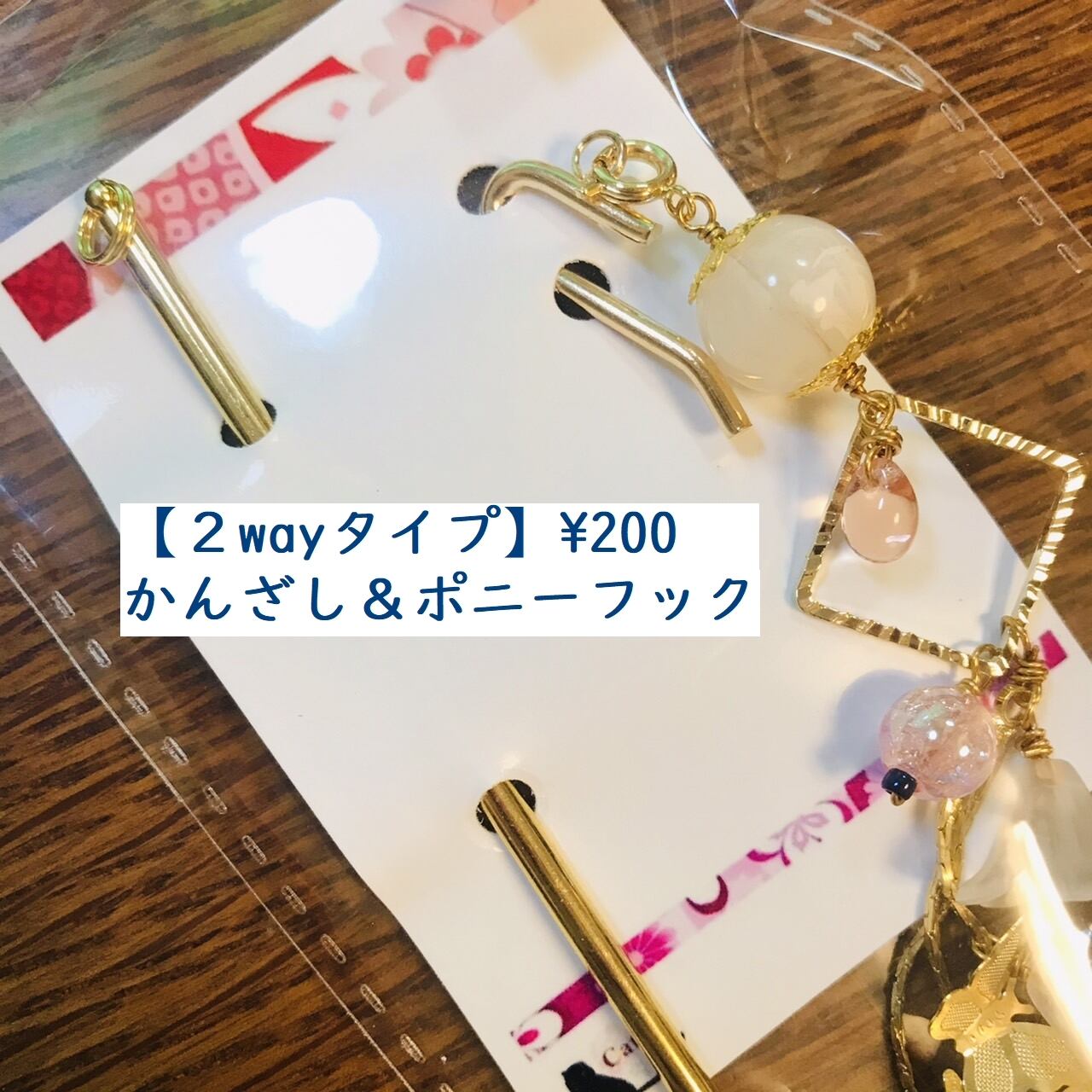 かんざしの軸(スティック)を、木製やポニーフック、二又かんざし等に変更可能です。