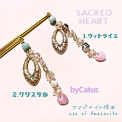 金属チャームの後ろに下がっているガラスビーズの色味が2種類ありますので、お好みのお色をお選びください。クリアカラーは透明なガラスビーズで、ヴィトライユは光の加減により黒・赤・透明など様々な色に見えます。